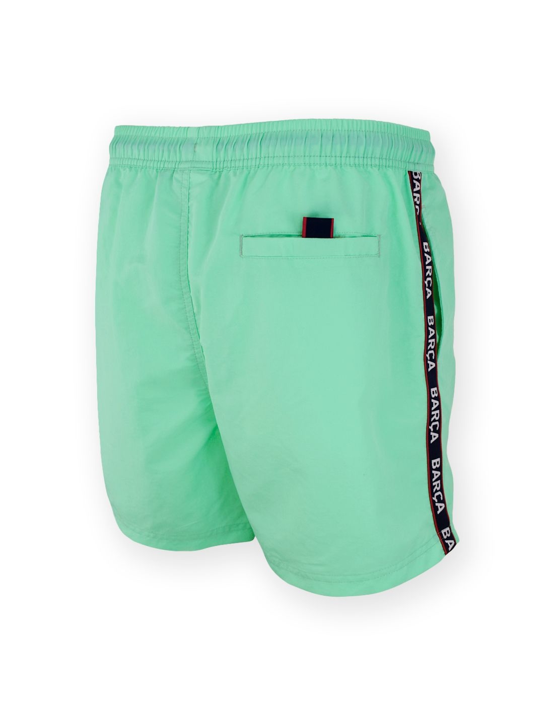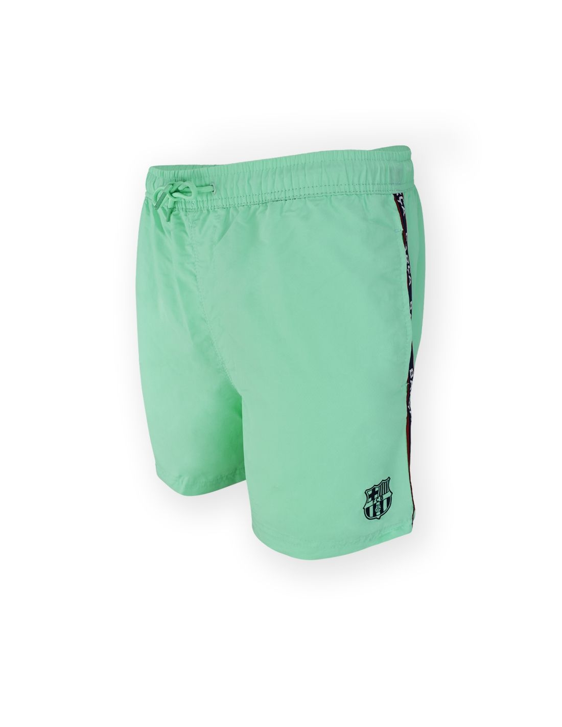 Este bañador del FC Barcelona para niño es perfecto para disfrutar del verano con orgullo azulgrana. Confeccionado en nylon resistente, presenta el escudo del club en relieve y una banda lateral con el lema “Barça”, que añade un toque distintivo al diseño.