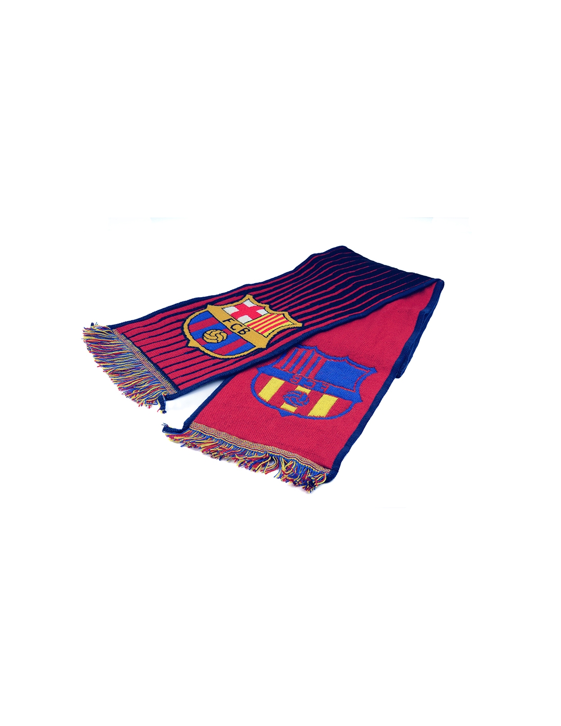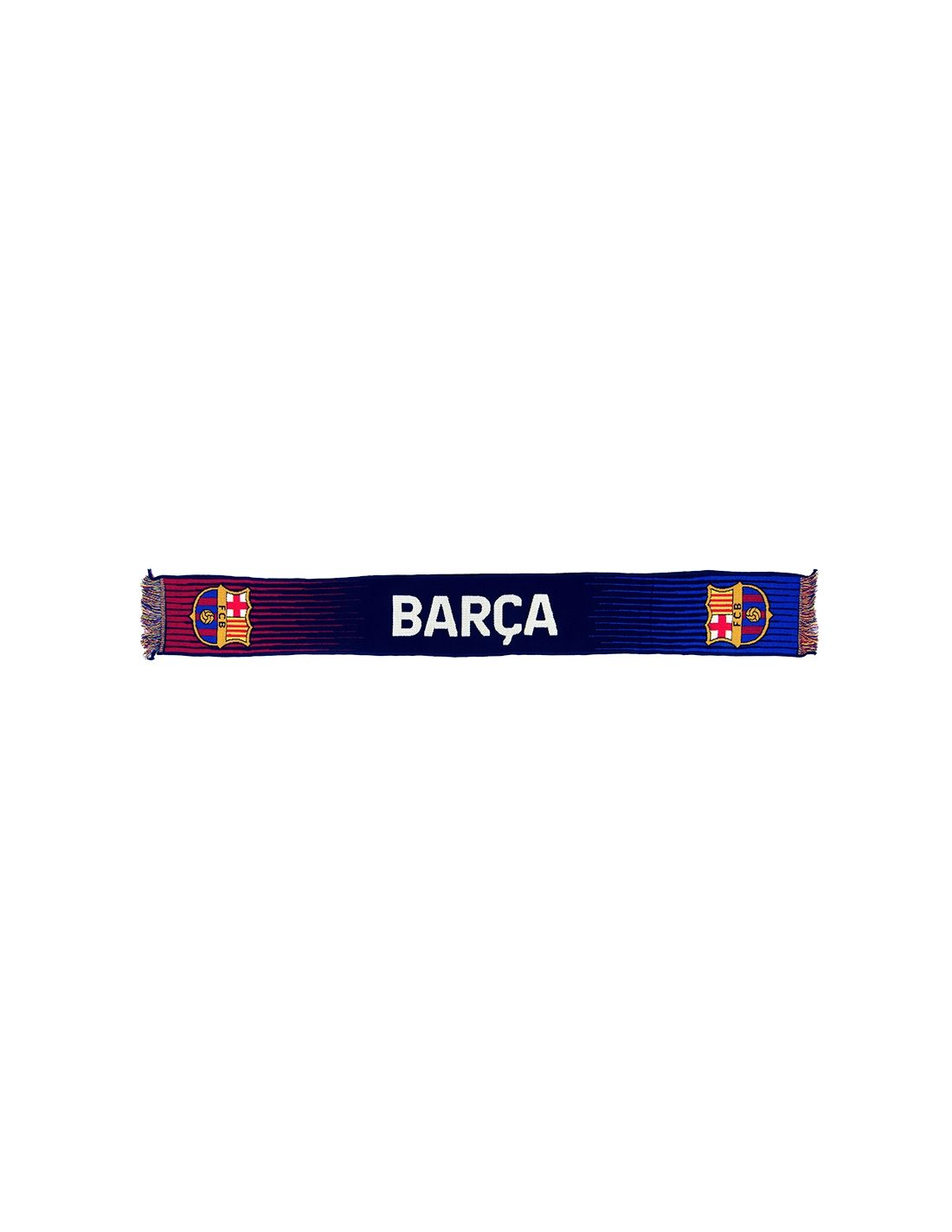 - Diseño oficial: escudo del Barça tejido en ambos laterales y el nombre "Barça" en el centro.
