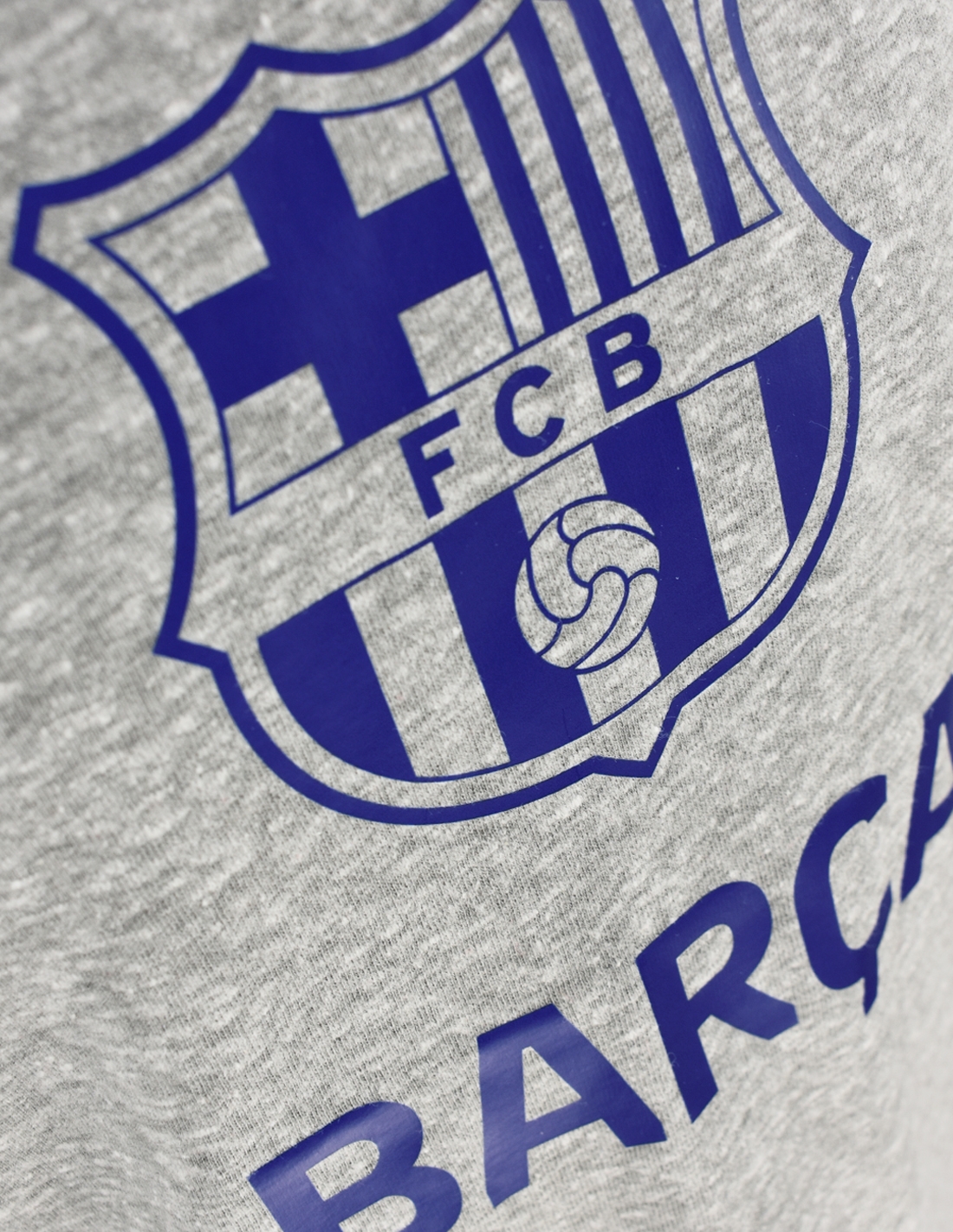 Camiseta oficial FC Barcelona Junior en gris con escudo azul. Comodidad, estilo y orgullo culé para los más jóvenes.