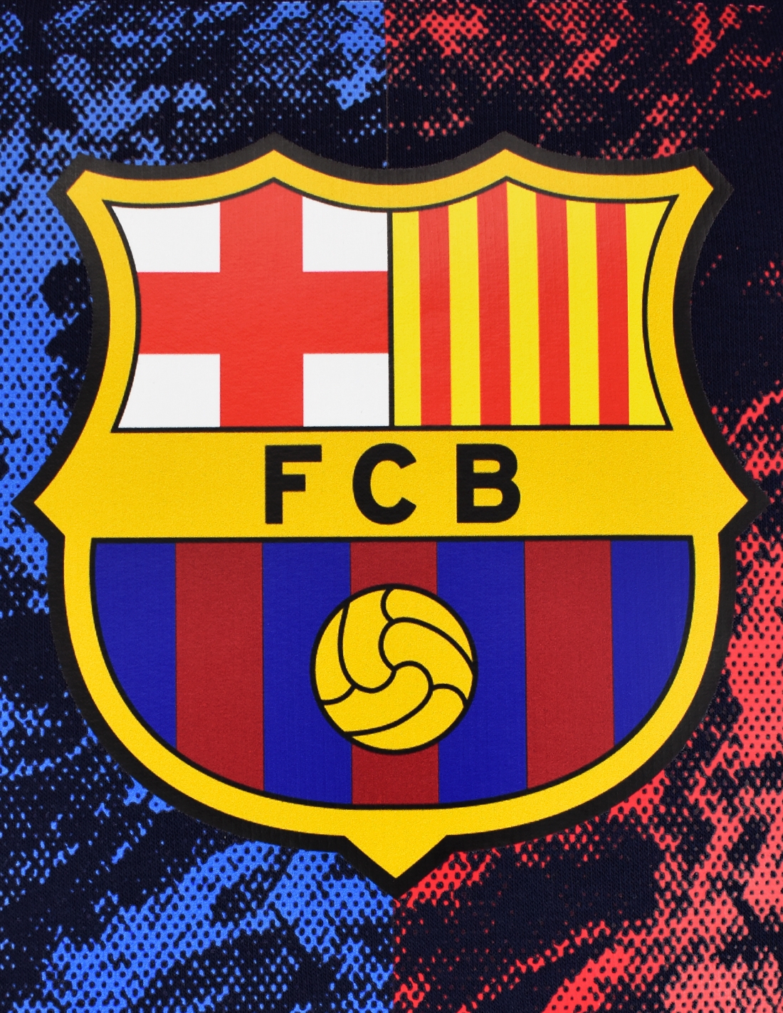 • Diseño vibrante: escudo del Barça con fondo gráfico azul y grana.