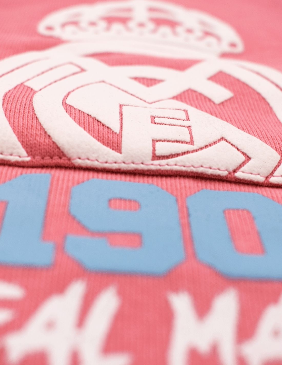 Este peto rosa del Real Madrid es la prenda perfecta para los más pequeños que comienzan a mostrar su pasión por el club. Su diseño dulce y cómodo destaca por el escudo en el centro y el año de fundación "1902" en color azul celeste, aportando un toque auténtico y representativo.
