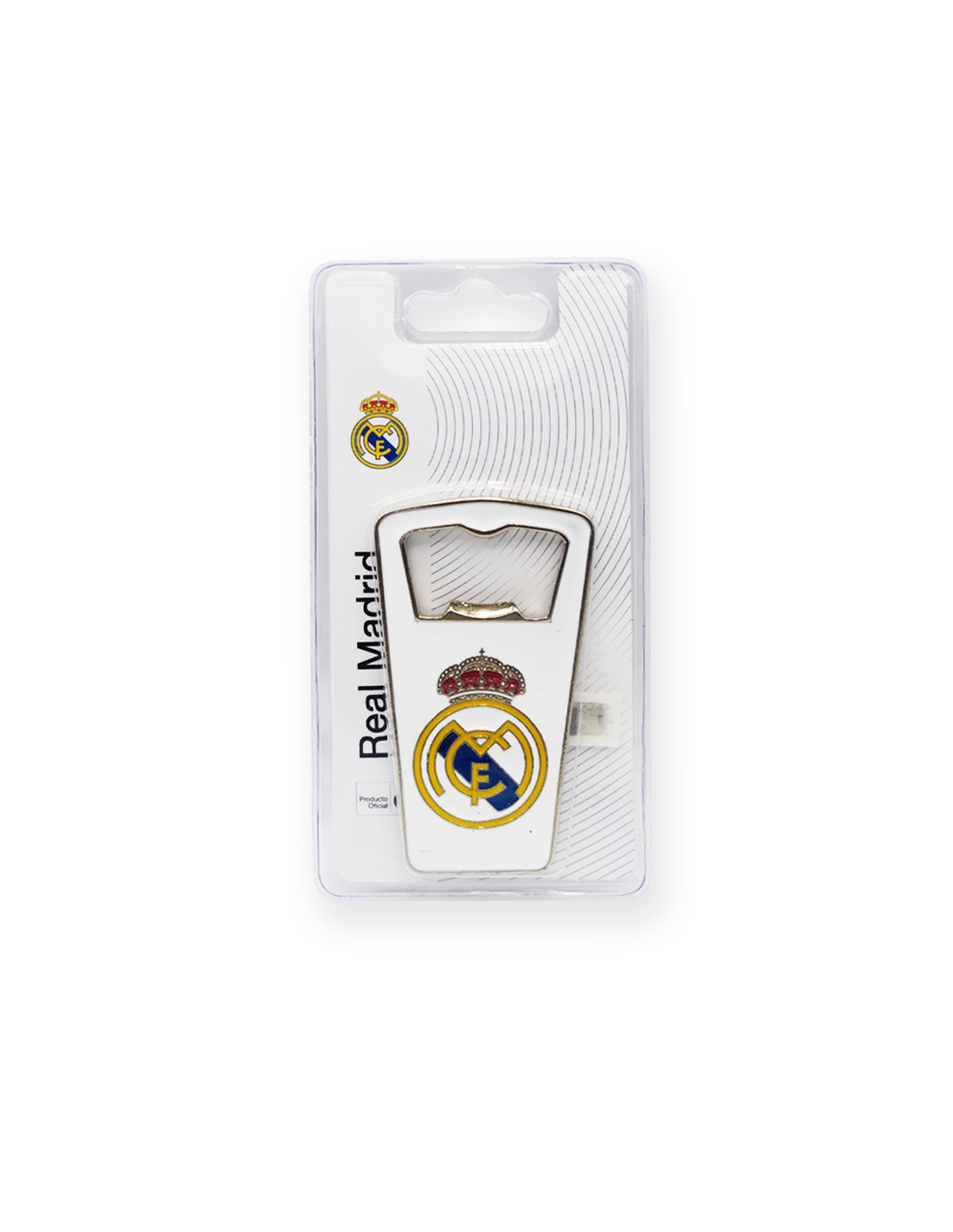 Este imán abridor del Real Madrid une utilidad y pasión por los colores blancos en una sola pieza. Con el escudo del club en el centro y un diseño metálico elegante, es perfecto tanto para decorar como para abrir tus bebidas favoritas.