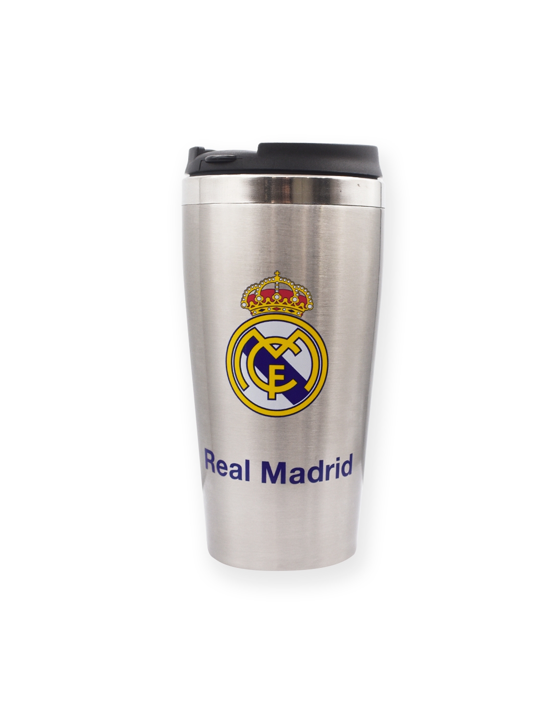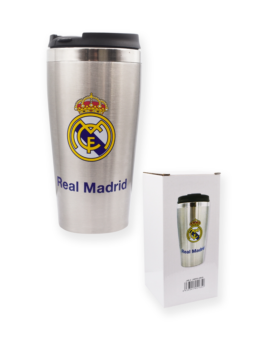 La jarra termo plateada del Real Madrid combina funcionalidad con un diseño elegante y deportivo. Con el escudo del club en el centro y acabado metálico, es perfecta para mantener tu bebida a la temperatura ideal mientras demuestras tu pasión por el equipo. Ideal para llevar al trabajo, de viaje o al estadio.