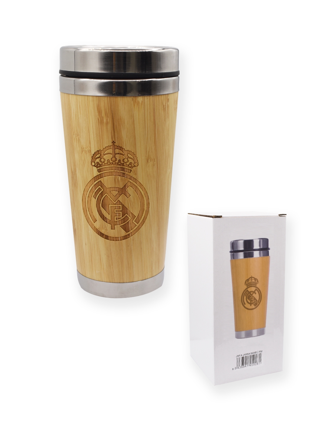 Esta jarra termo del Real Madrid en acabado bambú es la elección ideal para quienes valoran el diseño sostenible sin renunciar al estilo. Con el escudo del club grabado y un interior de acero inoxidable, mantiene tus bebidas calientes o frías durante más tiempo. Perfecta para llevar tu pasión por el Madrid de forma discreta y elegante en tu día a día.