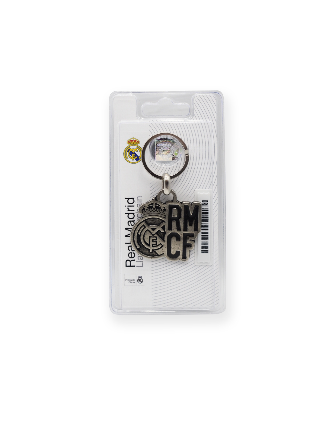 Con un diseño atrevido y urbano, este llavero combina el clásico escudo del Real Madrid con las iniciales RMCF en gran tamaño y acabado metálico.