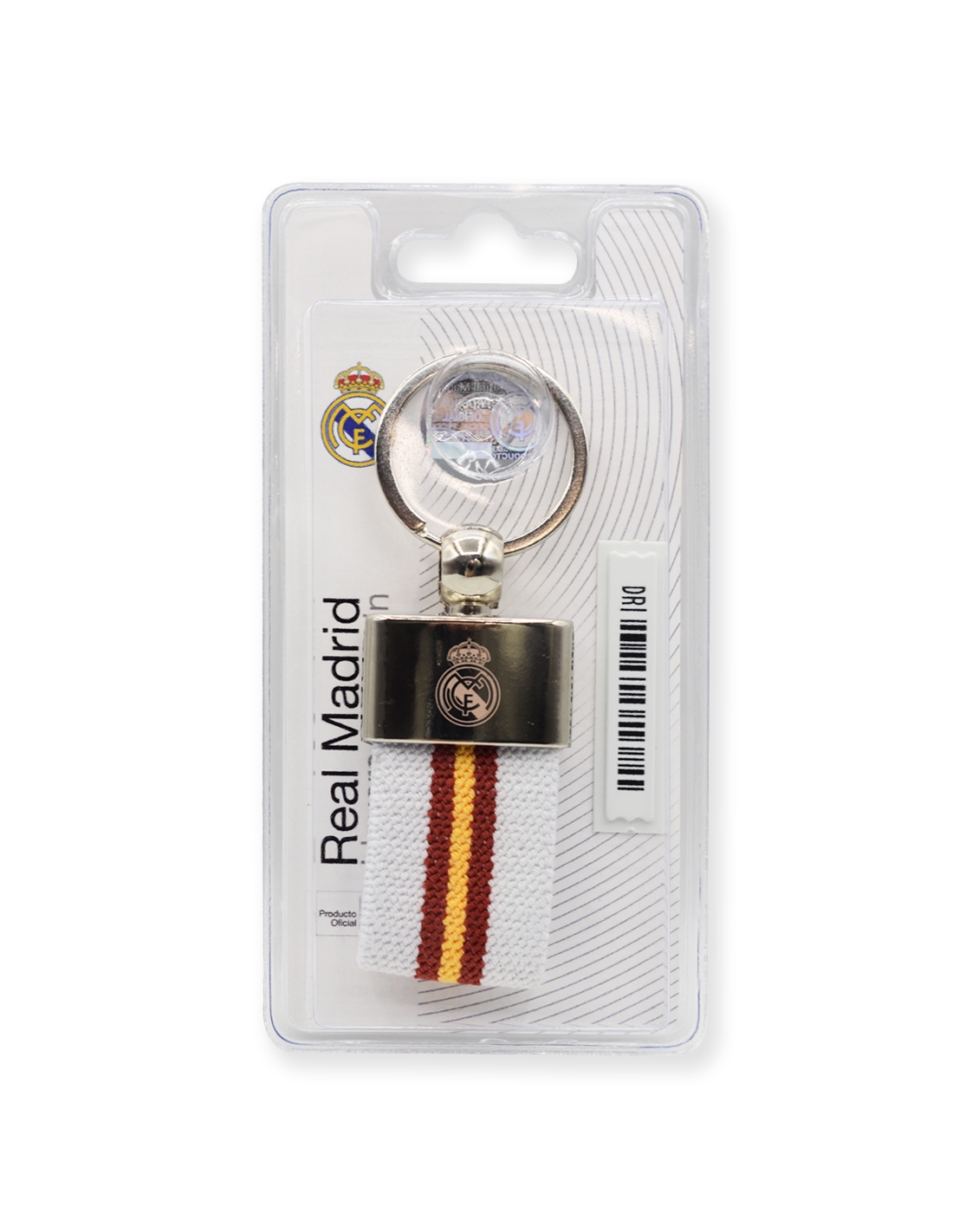 Con la bandera de España sobre fondo blanco y el escudo del Real Madrid grabado en metal, este llavero combina elegancia y sentimiento en una sola pieza. Compacto, resistente y con un diseño que no pasa desapercibido, es perfecto para quienes quieren llevar el orgullo madridista siempre a mano.