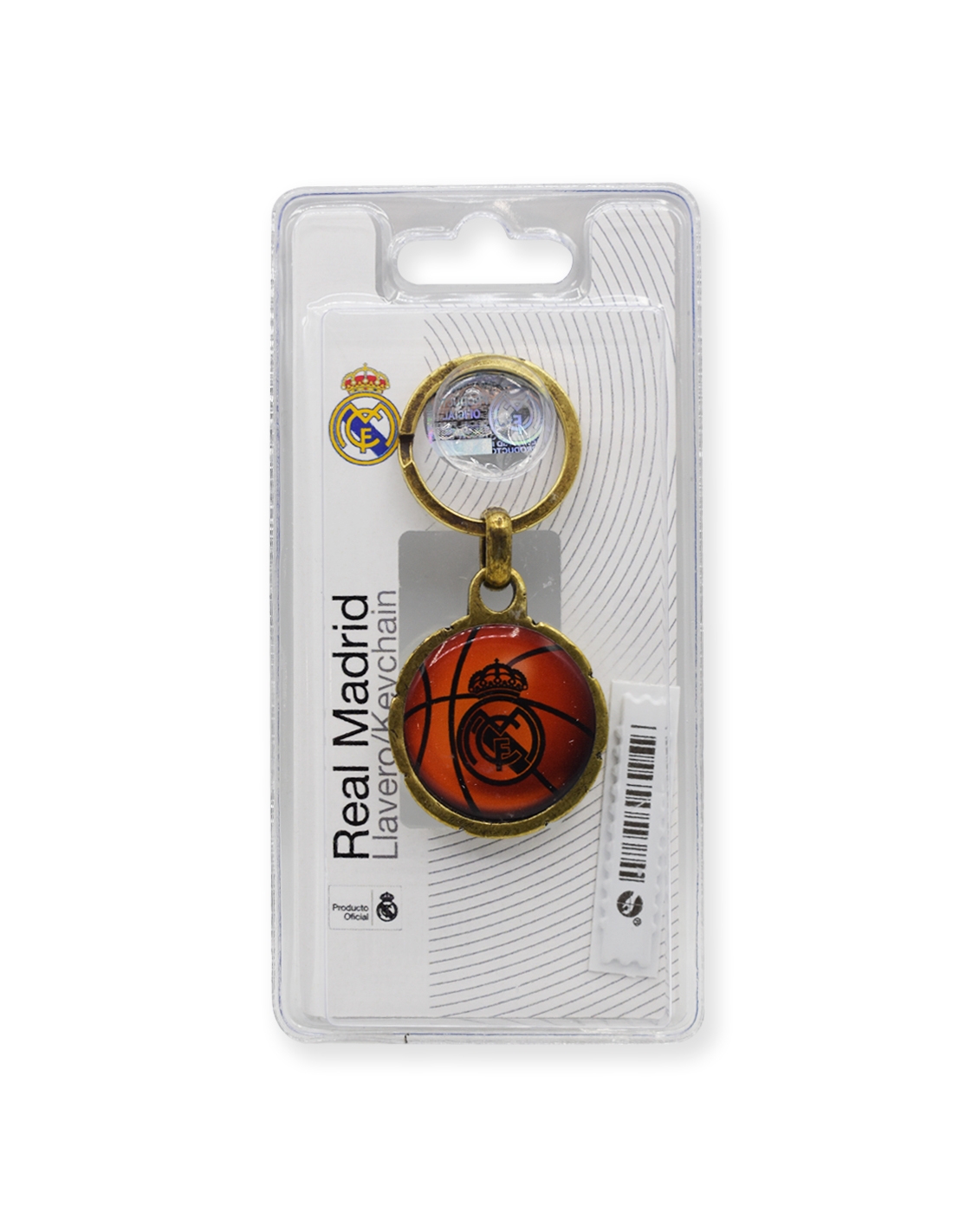 Este llavero con forma de balón de baloncesto y el escudo oficial del Real Madrid es perfecto para los aficionados al equipo blanco también en la cancha.