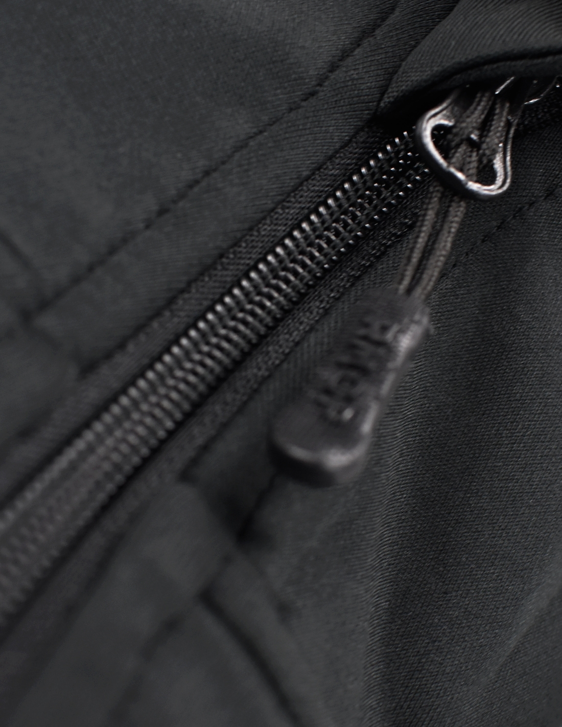 - Chaqueta totalmente negra con escudo oficial del Real Madrid bordado en el pecho.