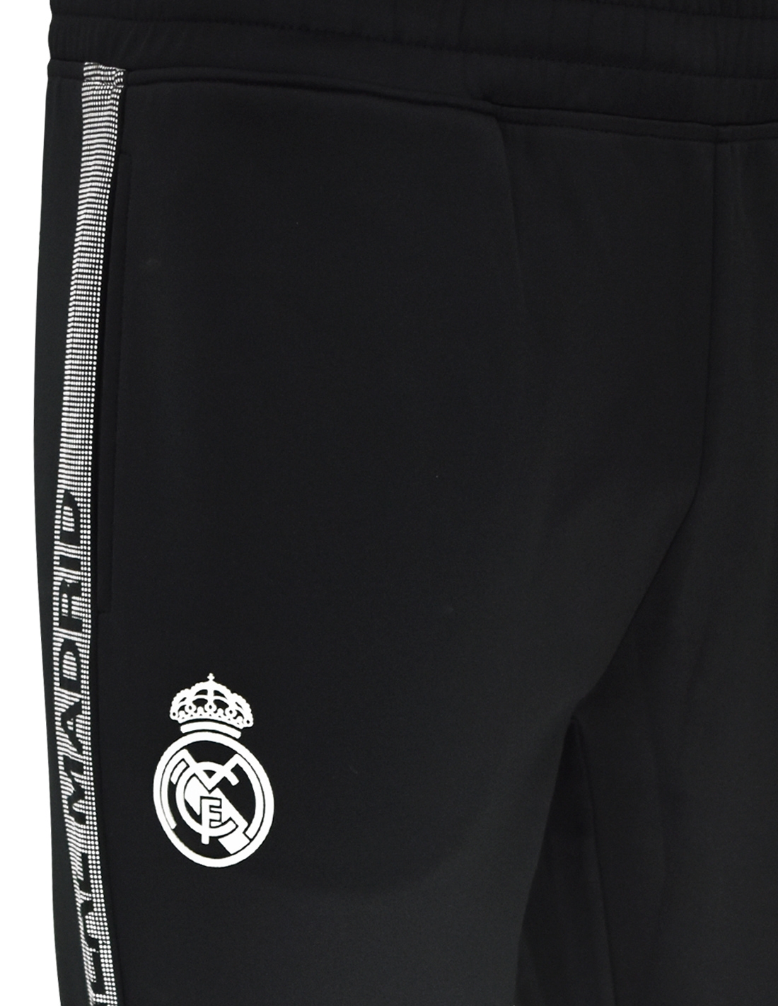 Chándal Real Madrid Black Elite. Diseño negro con detalles blancos, escudo oficial y tejido técnico. Elegancia, comodidad y orgullo madridista en cada movimiento.