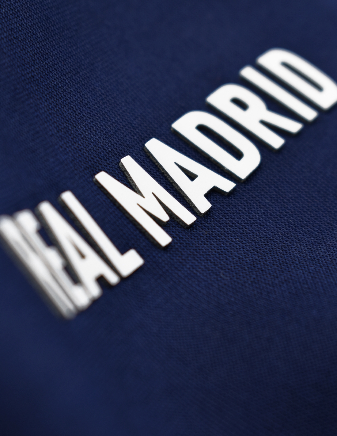 Diseño oficial del Real Madrid, con escudo en el pecho y texto “REAL MADRID”.