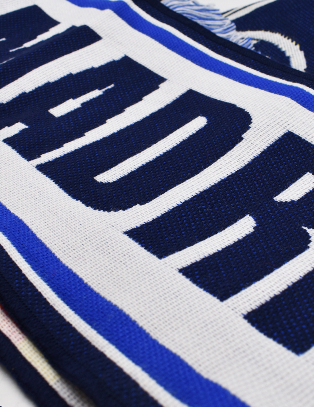 Su diseño vibrante y su tejido resistente la convierten en el accesorio perfecto para los días de partido, animar desde las gradas o abrigarte con estilo durante el invierno.